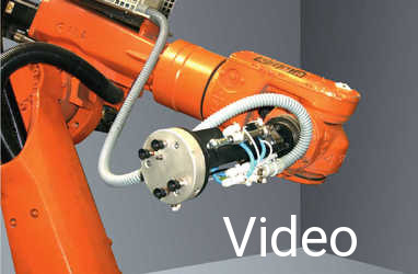Die Roboterintegration erfolgt in Kunststoffspritz- gussmaschinen und in Zinkdruckgussmaschinen. Die Einlege- bzw. Entnahmevorrichtungen sind modular aufgebaut, so dass beim Produktwechsel der Wechsel des Werkzeugs mit wenigen Handgriffen vollzogen werden kann. Identisch verhält es sich mit unseren Abbrechvorrichtungen, die modular aufgebaut sind und in Kombination mit der Roboterintegration eine Erhöhung der Qualität sowie der Quantität ermöglichen.